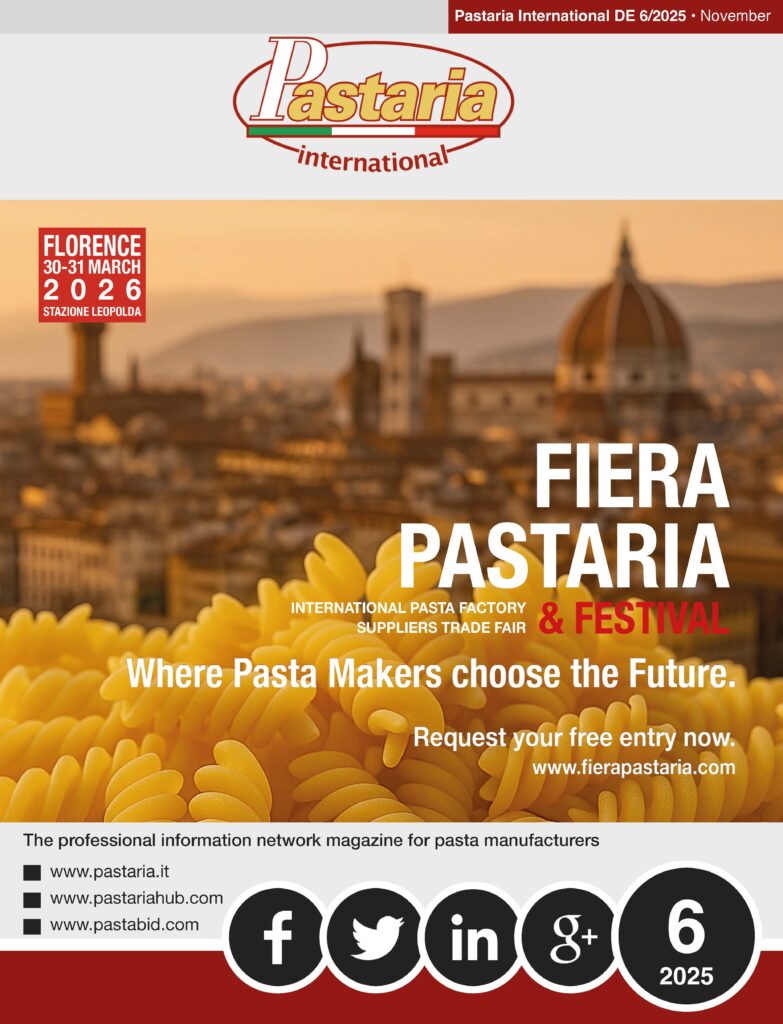 And in December the PASTARIA MAGAZINE (PRINTED VERSION), will be distributed free in Italy and around the world to all those known to us in this sector. Remember, you can read all 2025 issues of Pastaria using our app.